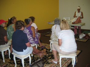Jackie teaching sewing classes